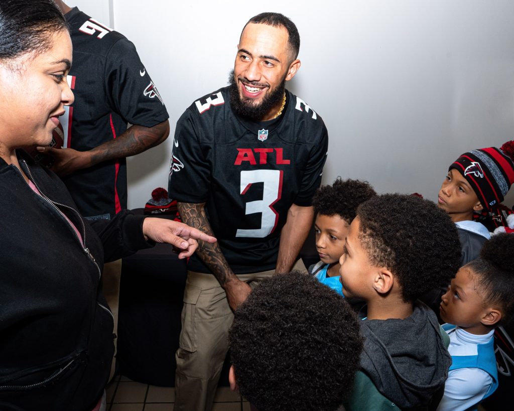 Through Single Mothers Initiative, Jessie Bates III Recruits Fellow Players, Cheerleaders, and Team Mascot to Visit Metro Atlanta Nonprofit Dedicated to Ending Homelessness – One Family at a Time